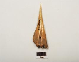 | Description / विवरण | A bone borer with pointed end and smoothly polished surface one side, another side rough and a natural groove on surface. |