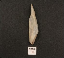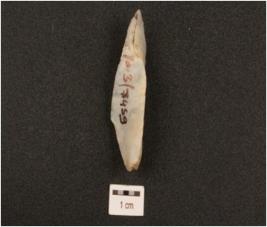 | Description / विवरण | A utilized flake made on chert, use-wear marks along cutting edges, flake scars on both sides. |