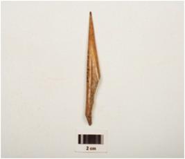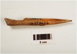 | Description / विवरण | A bone point one end sharp pointed, another end damaged, polished surface and a natural groove in a side. |