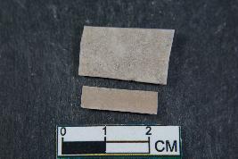 | Description / विवरण | Fragment of a blade with two dorsal ridges having smooth surface. Shorter blade along with one dorsal ridge has Length 1.7 cm and Breadth- 1 cm. |