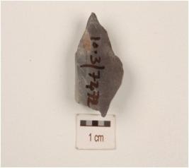 | Description / विवरण | A flake made on chert, use-wear marks on cutting edge, flake scars on surface. |