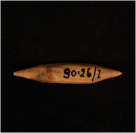 | Description / विवरण | Bone point, long narrow having sharp pointed on both sides. Well polished surface, light brown in colour, smooth surface. |