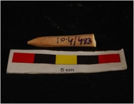 | Description / विवरण | Fragment of a bone point with smooth surface, circular in section with well polished. Pointed one end. |