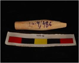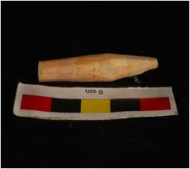| Description / विवरण | Fragment of a bone point with circular in section. Slightly broken tip one end, smooth surface and cream in colour. |