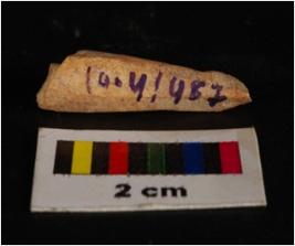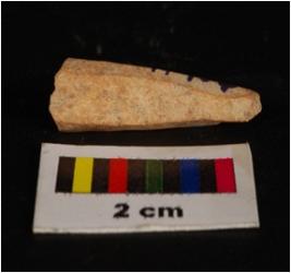 | Description / विवरण | Fragment of a bone point with circular in section. Pointed one end and cream in colour. |