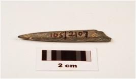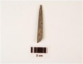 | Description / विवरण | A stone point with polished surface, circular in section, pointed one end and other end broken, grey in colour. |