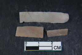 | Description / विवरण | Fragments of blades with two dorsal ridges having smooth surface. Largest fragment has one dorsal ridge. |