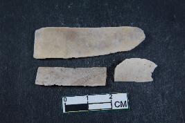 | Description / विवरण | Fragment of a blade with three dorsal ridges having smooth surface. Shortest blade has one dorsal ridge and the remaining blade has two dorsal ridges. |