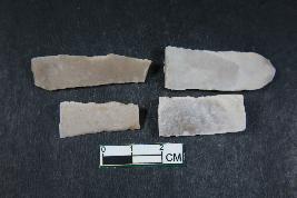 | Description / विवरण | Fragments of blades with one dorsal ridge having smooth surface. One fragment has four dorsal ridges and a bulb of percussion. |