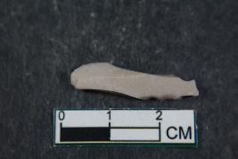 | Description / विवरण | A fragment of a blade having two dorsal ridges. It has smooth surface. |