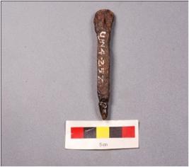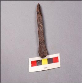 | Description / विवरण | A chisel with a flat, broad, sharp cutting edge and another pointed end, rectangular cross section. |