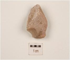 | Description / विवरण | A core flake made on chert, flake scars on surface, smooth surface. |