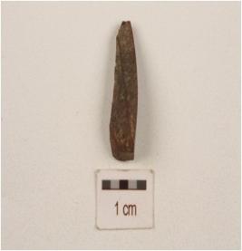 | Description / विवरण | A blade made on chert with a two ridges on dorsal surface, use-wear marks on working edge, trapezoidal in section. |