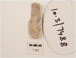 | Description / विवरण | A blade made on chert with flake scars on dorsal side, use-wear marks on working edge, trapezoidal in section. |