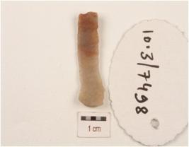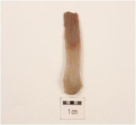 | Description / विवरण | A blade made on chert with two ridge on dorsal surface, use-wear marks on working edges, trapezoidal in section. |