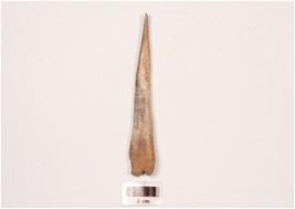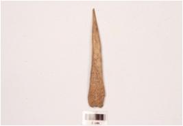 | Description / विवरण | Bone point with one end pointed, other end flat and broad, roughly rectangular cross section and cut marks visible on surface. |