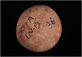| Description / विवरण | Terracotta sling ball with smooth and uneven surface, red in colour and circular section. |