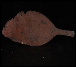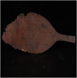 | Description / विवरण | Fragment of spear head, surface is flat and edges are broken, surface is corroded. |