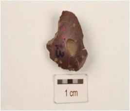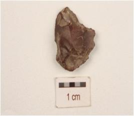 | Description / विवरण | A scraper made on chert end struck flake, use wear marks, partly retouch cutting edge, prepared platform on proximal end, bulb of percussion on ventral side, flake scars on dorsal side. |