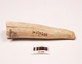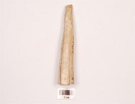 | Description / विवरण | Horn point with one pointed end, other side broken, polished surface and porous interior. |