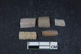 | Description / विवरण | Fragments of blades having two dorsal ridges in three of them and one dorsal ridge in two of them. One of them has bulb of percussion.They have smooth surface. |