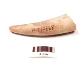 | Description / विवरण | Horn point with one end pointed other end broad, porous interior. Broken at broad end. |