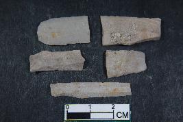 | Description / विवरण | Fragments of blades having two dorsal ridges with bulb of percussion in three of them.They have smooth surface. |