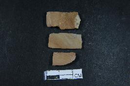 | Description / विवरण | Fragments of blades. The longest blade has two dorsal ridge and other two has one dorsal ridge having smooth surface. |