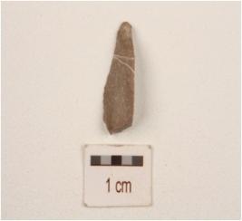 | Description / विवरण | A point made on end struck chert flake, pointed on distal end, prepared platform on proximal end, bulb of percussion on ventral side, flake scars on dorsal side. |