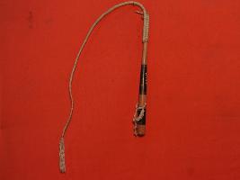 | Description / विवरण | It s a Hunter Whip made by wood. Colour is brownish and well made. It may be used for control of horses. Surface is rough. |