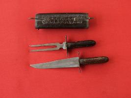 | Description / विवरण | It is a dagger containing two different daggers. Dagger A is simple and its blade is almost straight. Edge is sharp and tip is pointed. Quillons are made of brass. Handle is made of wood which is carved. Dagger B is unique. Its blade its blade is bitureated and quillons are made out of brass plate. Handle is made of wood which is carved. Daggeer case is made of wood with carved. Therer is a slit on each end of the case for dagger blade. There is also given a lock on each of the end. |