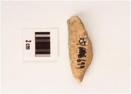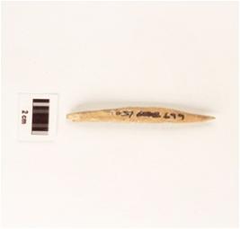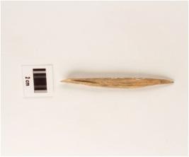 | Description / विवरण | Fragment of bone point, pointed end slightly damaged, other end broken, uneven surface, brownish surface. |