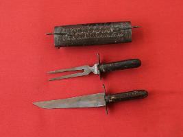 | Description / विवरण | It is a dagger containing two different daggers. Dagger A is simple and its blade is almost straight. Edge is sharp and tip is pointed. Quillons are made of brass. Handles of both the daggers are carved beautifully. Dagger B is unique. Its blade its blade is bifurcated and quillons are made out of brass plate. Handle is made of wood which is carved. Dagger case is made of wood with carved. Each dagger goes into another one from the end this is the unique system of closing. There is also given a lock on each of the end. |