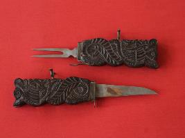 | Description / विवरण | It is a dagger containing two different daggers. Dagger A is simple and its blade is almost straight. Edge is sharp and tip is pointed. Quillons are made of brass. Handles of both the daggers are carved beautifully. Dagger B is unique. Its blade its blade is bifurcated and quillons are made out of brass plate. Handle is made of wood which is carved. Dagger case is made of wood with carved. Each dagger goes into another one from the end this is the unique system of closing. There is also given a lock on each of the end. |