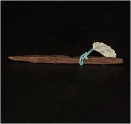 | Description / विवरण | A copper awl, pointed from both ends, rectangular in shape, crack in the middle. |