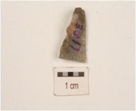 | Description / विवरण | A blade made on chert end struck flake, partly retouch cutting edges, prepared platform on proximal end, flake scars on dorsal side, use wear marks. |