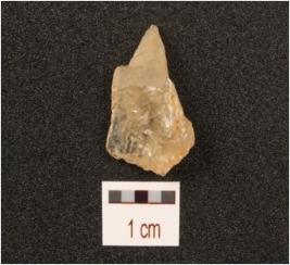 | Description / विवरण | Flake made on quartz, flake scars on surface, use-wear marks along cutting edges. |