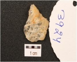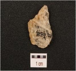 | Description / विवरण | Flake made on quartz, use-wear marks along cutting edges, smooth surface. |