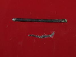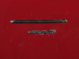 | Description / विवरण | Trench B- 13 cm, Depth 50 cm, Layer 2 There is a rod and wire piece made of copper. Nail has sharp tip and it is treated. Appearance of wire is thin. Colour of both is copper brown. |