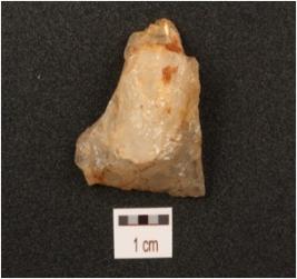 | Description / विवरण | Core made on quartz, four-flake scars on both surface, traingular in section, smooth surface. |