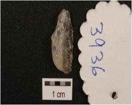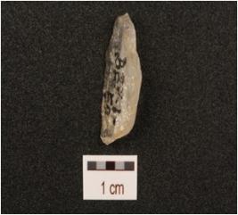 | Description / विवरण | Flake made on quartz, flake scars on one side, use-wear marks on other side, smooth surface. |