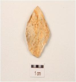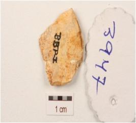 | Description / विवरण | Flake made on side-struck chert flake, use-wear marks along cutting edges, positive bulb on ventral surface. |