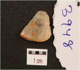 | Description / विवरण | Flake made on quartz, plain surface, use-wear marks along cutting edges, smooth surface |