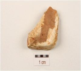 | Description / विवरण | Flake made on chert, cortex visible, flake scars on surface, prominent bulb on ventral surface, cutting edges. |