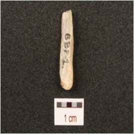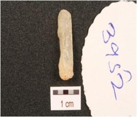| Description / विवरण | Utilized flake made on quartz, prominent ridge on surface, triangular in section, smooth surface. |