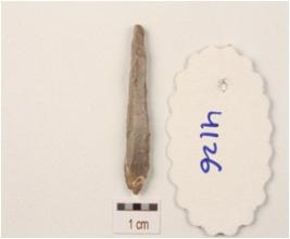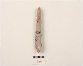 | Description / विवरण | A blade made on chert with single ridge, use-wear marks on the cutting edge, trapezodial in section. |