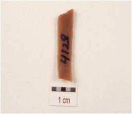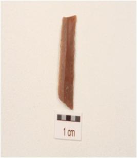| Description / विवरण | A fragment of a blade with double ridge, use wear marks on the cutting edges, broken from both the ends, smooth surface, trapezodial in section. |
