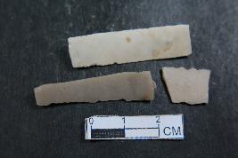 | Description / विवरण | Fragments of blades with two dorsal ridges and smooth surface.Other blade has one dorsal ridge. |
