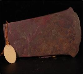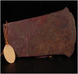 | Description / विवरण | Fragment of axe, it is flat and sharp edges, a hole mark on the head corner, corroded surface. |