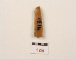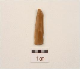 | Description / विवरण | A blade made on chert with double ridge, bulb on the ventral side, use wear marks on the ventral side, trapezodial in section. |